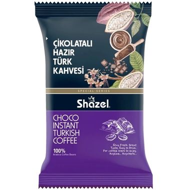 No one can resist the delicious taste of Shazel Choco Instant Turkish Coffee..The coffee's fresh and intense flavor creates a perfect balance with its unique touch of chocolate.