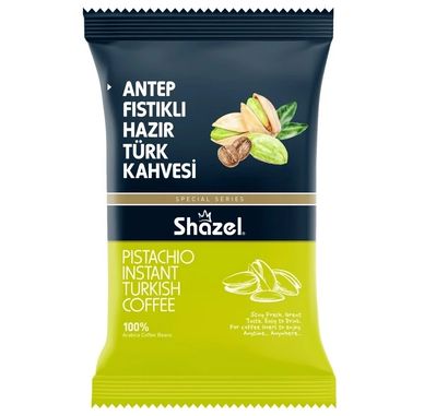 Shazel Pistachio Instant Turkish Coffee is a taste you will love. The coffee's fresh and intense flavor creates a perfect balance with its unique touch of pistachio.